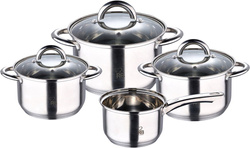 ( ilość produktów: 5 )RENBERG Silver 10 elementów Zestaw 4 Garnków z Pokrywką + 2 Akcesoria