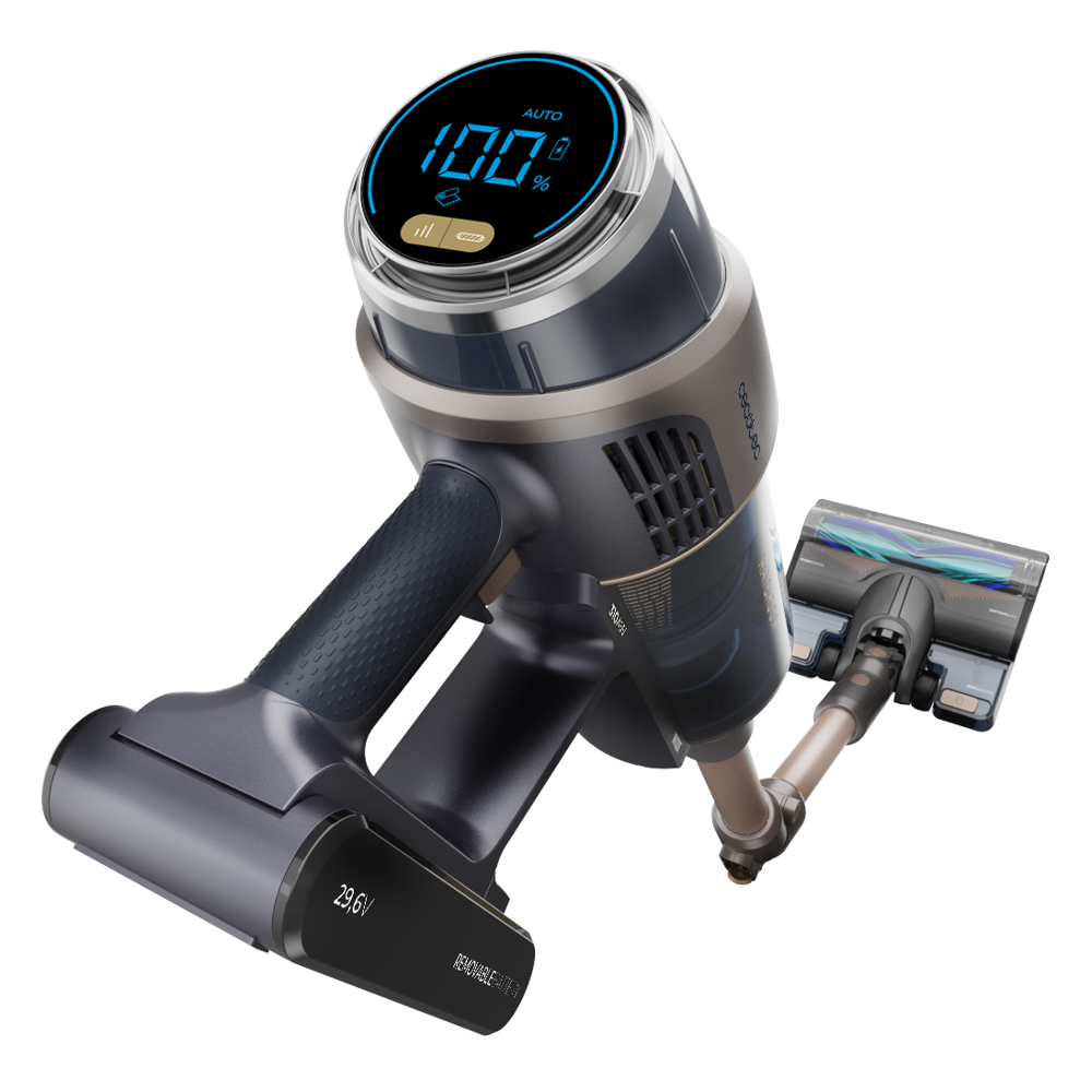 ⭐ Wyposażony w baterię Pulsar o pojemności 4000 mAh, odkurzacz zapewnia do 100 minut nieprzerwanej pracy. To wystarczająco dużo czasu, aby posprzątać całe mieszkanie bez konieczności ładowania. Dodatkowo, tryb Auto inteligentnie dostosowuje moc ssania, optymalizując zużycie energii.