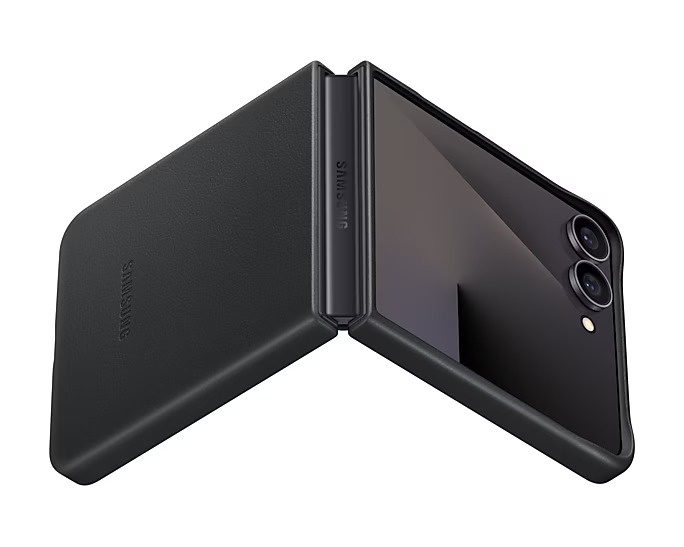 ⭐ Czarne etui Samsung Kindsuit Case to kwintesencja elegancji i minimalizmu. Skóra ekologiczna z subtelną fakturą dodaje klasy i poprawia chwyt, zapobiegając wyślizgiwaniu się urządzenia. Smukły profil etui idealnie przylega do Galaxy Z Flip 7, podkreślając jego opływowe kształty.